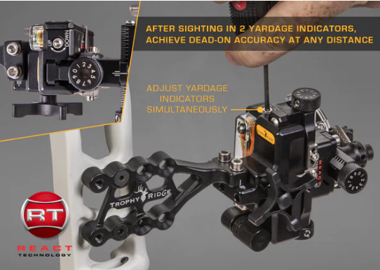 The React® One Pro™ is one of the best selling sights from Trophy Ridge. This vertical single pin sight allows archers to push the limits and reach up to 100 yards.